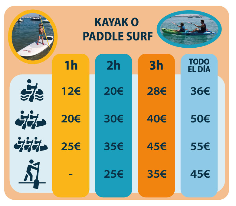 | KAYAK doble | 20€ | 30€ | 40€ | 50€ |